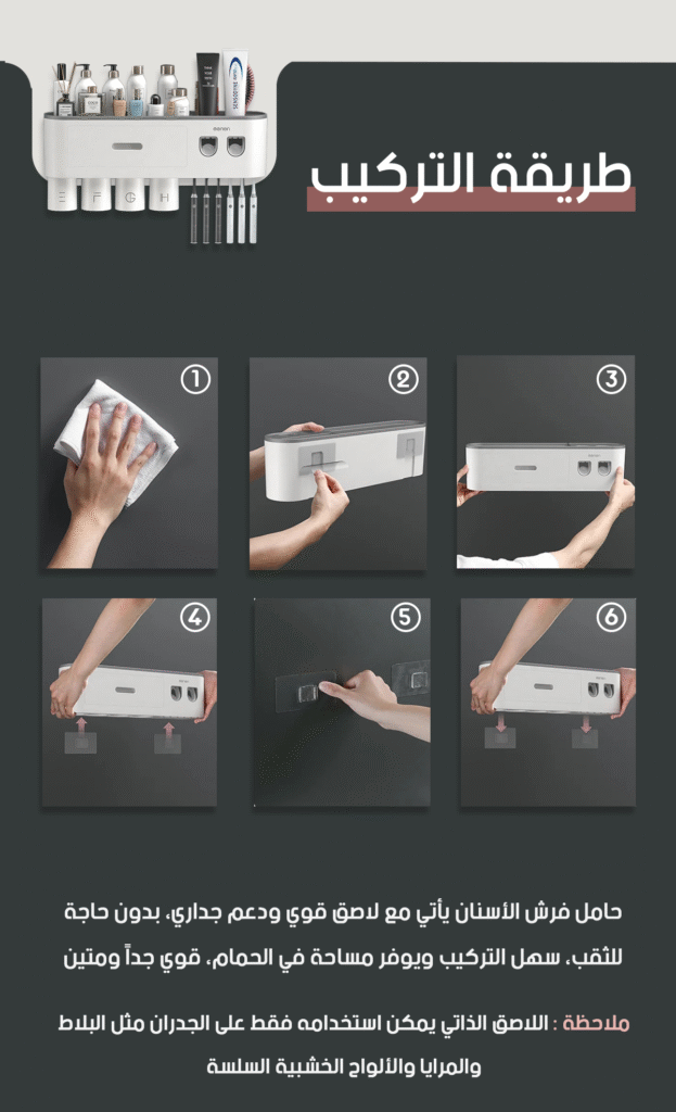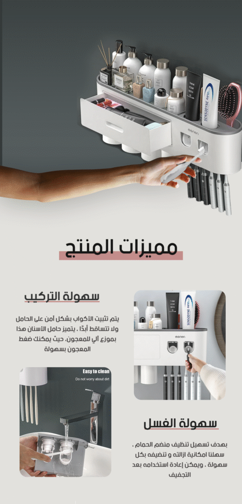 🎉 احصل على حامل فرشاة الأسنان الذكي اليوم وحول حمامك إلى مكان أكثر تنظيمًا وصحة